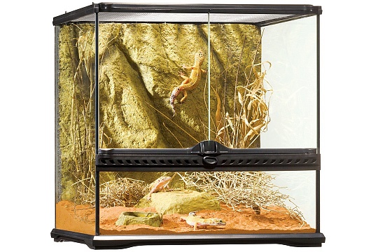 Кубический террариум Exo-Terra серии Small станет отличным жилищем для наземных животных: эублефаров, молочных змей и маисовых полозов, жаб и лягушек, и т.д.
